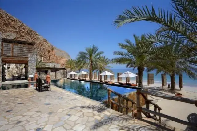 The resort offers a number of different room types to suit the requirements of any party size. The villas are arranged Omani village-style and offer separate bedrooms and living rooms; all have a private sand garden with pool and patio, and some have views over the ocean. Bathrooms feature over-sized tubs and indoor and outdoor showers. Villa amenities include: