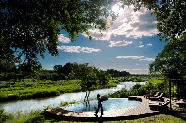 Lion Sands is the only private reserve rooted in both the Sabi Sand Nature Reserve and Kruger National Park, and consists of four luxury riverside lodges. The river attracts a diversity of wildlife that guests can view from the lodges or their room.