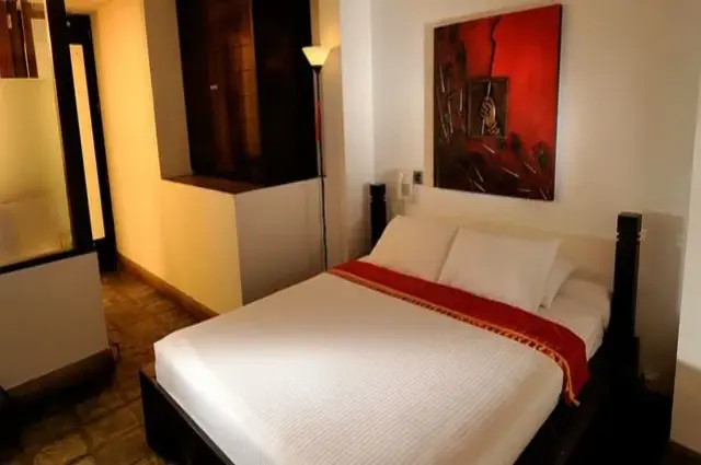 The 10 residential areas are comprised of a Penthouse, 2 Suites, 3 Superior Balcony Rooms and 4 Deluxe Rooms and furnised in a combination of cottons, silks, wood and glass. The red, yellow, blue and orange colours used are linked to the processional colours of the traditional Kandyan Perehara.